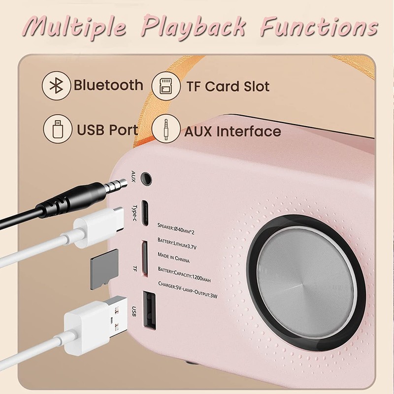 5.Multifunctional Speaker:Support Bluetooth connection, TF card, U disk and AUX audio playback.