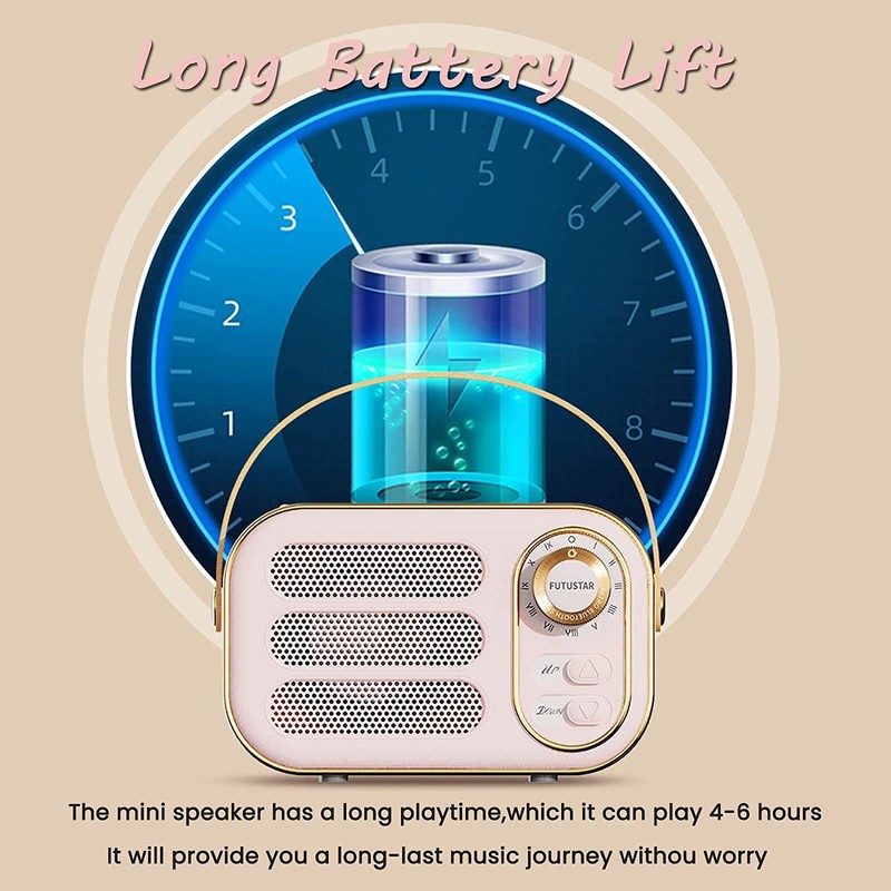 - Surprisingly Loud Volume - With 5-watt speakers processing audio output, this retro speaker amazingly richer and louder without any distortion. The compact retro bluetooth speaker only takes a space of 125*75*59mm with a 400mAh built-in rechargeable battery, up to 6 hours play time.