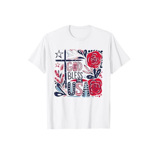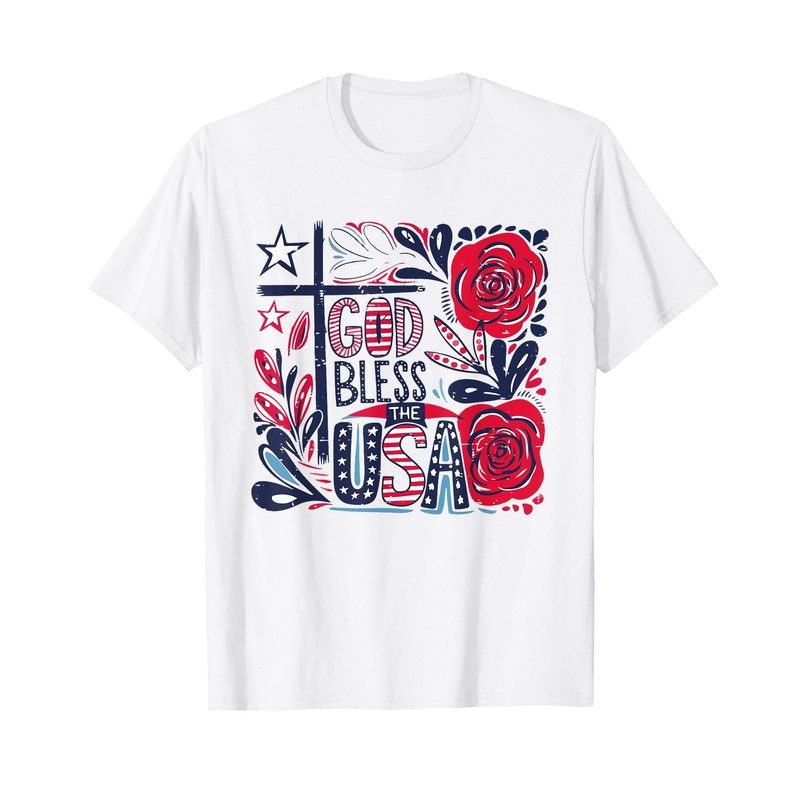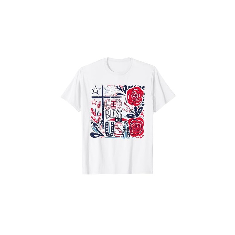 - This Fourth of July, show your patriotic spirit in style with this God Bless The USA Christian 4th Of July Floral tee. Featuring a classic red, white and blue design, this tee is the perfect way to celebrate America's independence!