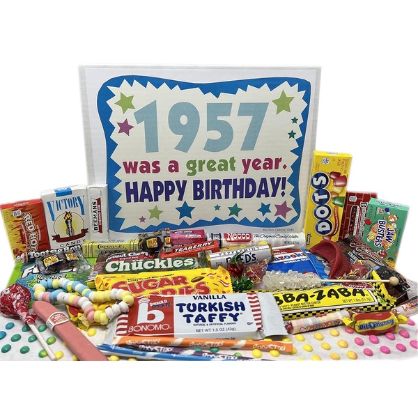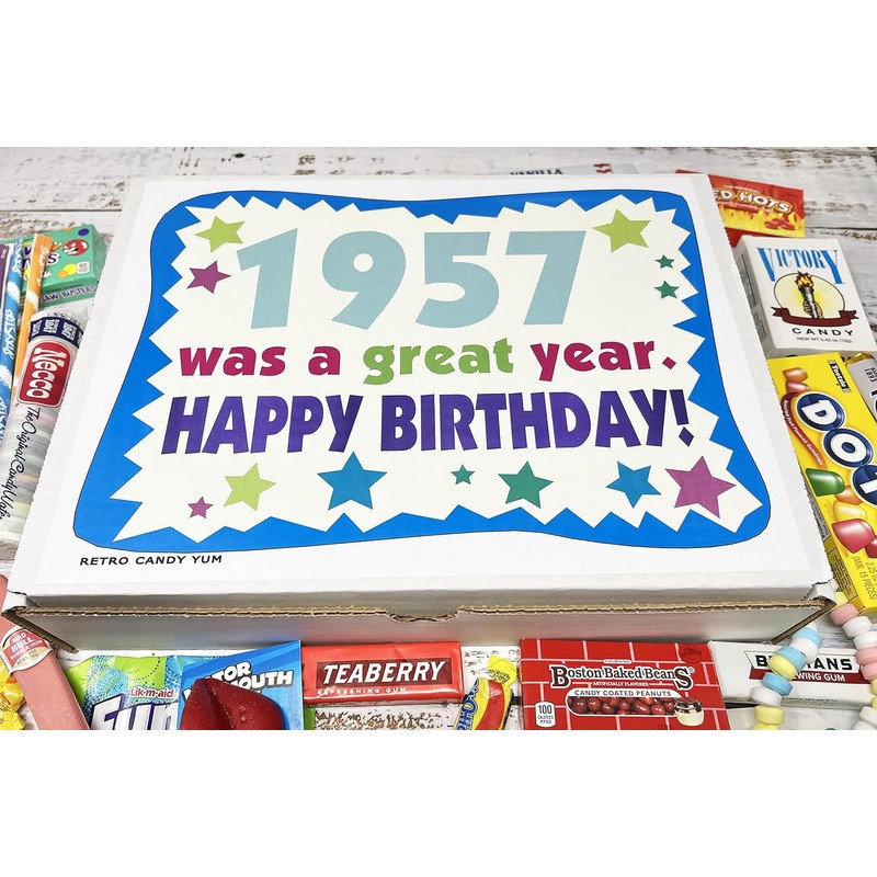RETRO CANDY YUM ~ 1957 67th Birthday Gift Box of Nostalgic Candy from Childhood for 67 Year Old Man or Woman Born 1957