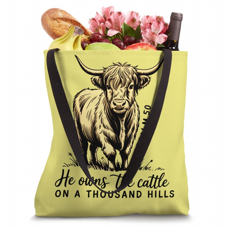 Retro Christian Farm - He Owns The Cattle Bible Verse Faith Tote Bag