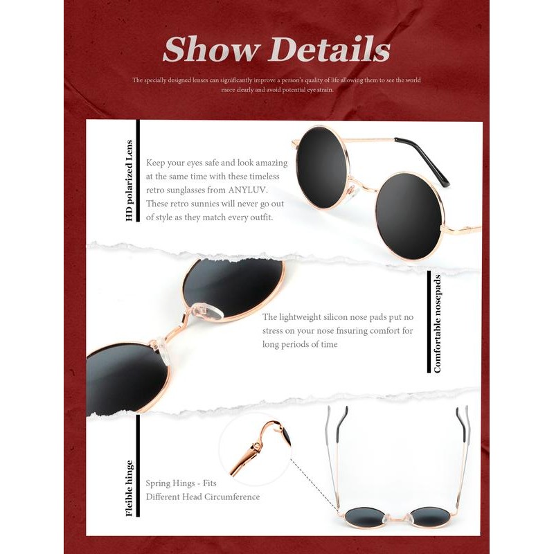 Retro circular polarized sunglasses for men and women, upscale metal design, fashionable and versatile, UV400(S36):_golden F Black L + Golden F Red L_45 Millimeters