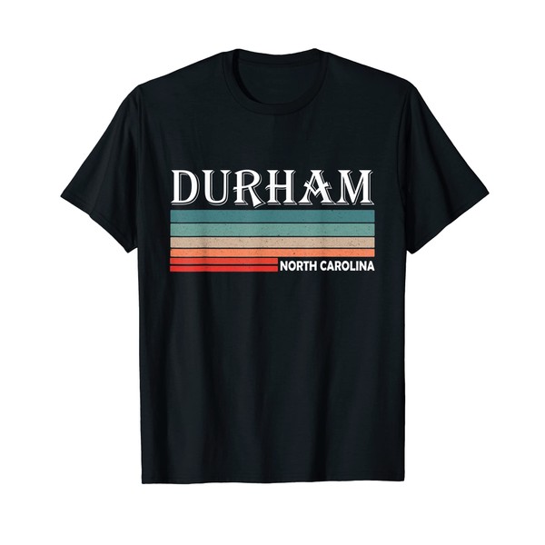 - This design has a retro vibe and features Durham. It reads, Durham North Carolina.