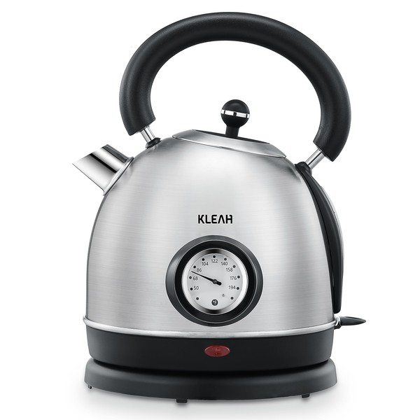 Retro Electric Water Kettle 1.8L Stainless Steel for Boiling Water with Temperature Gauge, Visible Water Level Line, Led Light, Auto Shut-Off & Boil-Dry Protection, 1500W Fast Heating