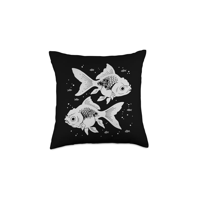 Retro Fancy Goldfish Aquarium Pet Fish Bowl White Goldfish Throw Pillow