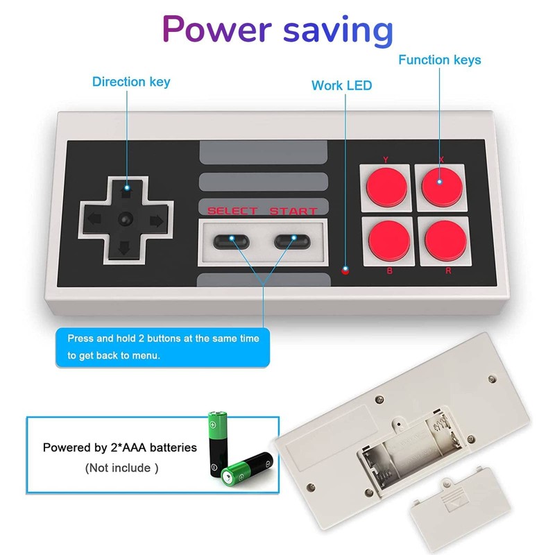 - Wireless Controllers: This classic mini game console comes with dual wireless remote controllers.No cable constraint,it is convenient for you to do all kinds of game operations during the game.