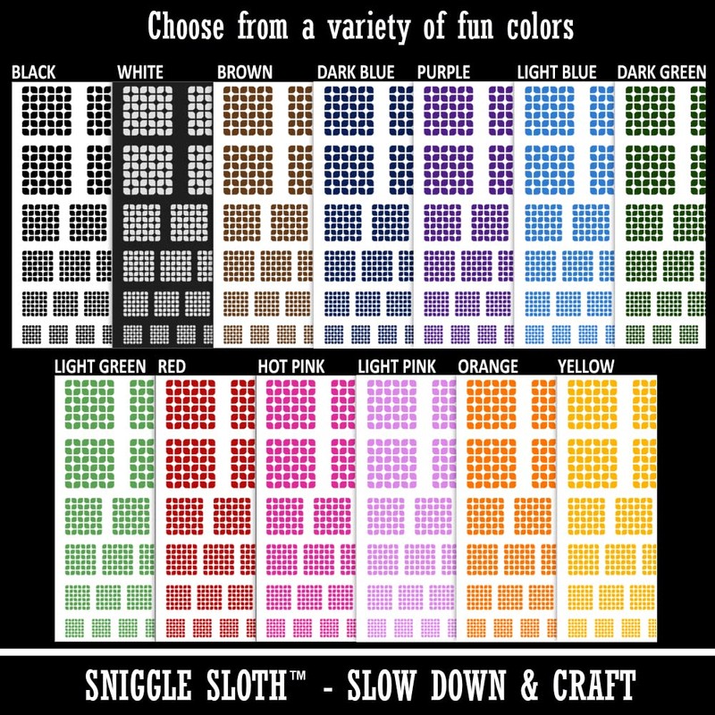 The sheet features 28 temporary tattoos in the design shown in a variety of sizes to suit your needs. Each size references the longest side of the tattoo: 2 inch (qty of 6), 1.5 inch (qty of 4), 1.25 inch (qty of 5), 1 inch (qty of 6), 0.75 inch (qty of 7).