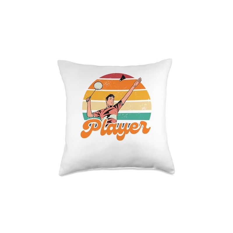 Retro Graphic Badminton Player Shuttlecock Player Sports Throw Pillow