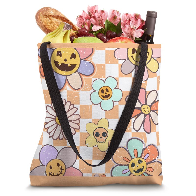 • Cute & Colorful Halloween Fun: This vibrant orange checkered design features smiling jack-o'-lanterns and flowers in bright orange, pink, and purple. Perfect for women and teens who love cute, cheerful Halloween decorations or accessories!