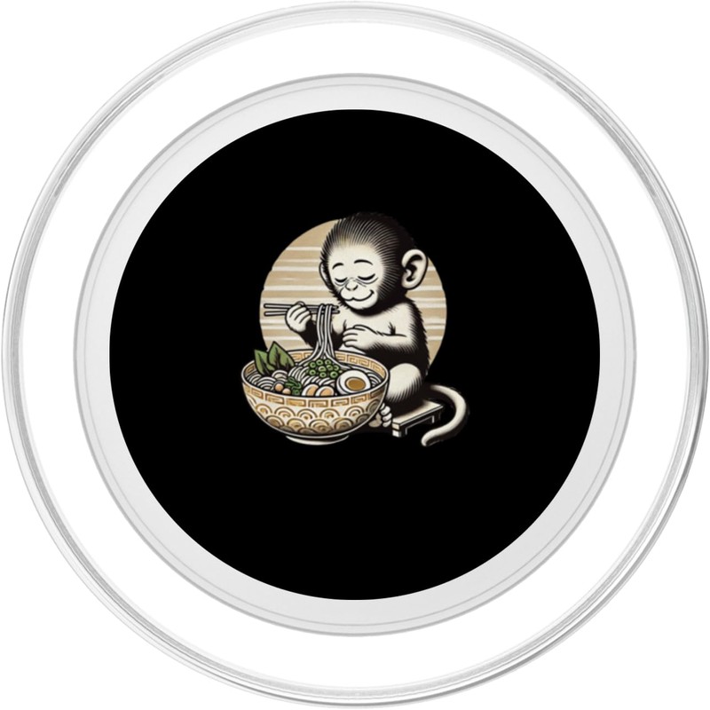 Retro Japanese Art Wildlife Noodle Lover Cute Monkey Ramen PopSockets PopGrip for MagSafe