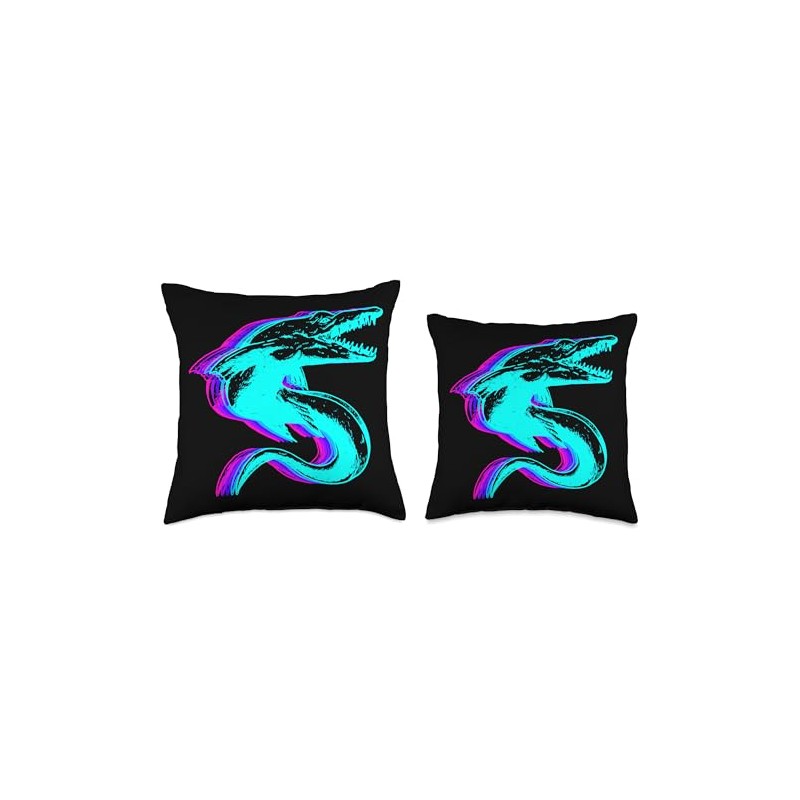 Retro Mosasaurus Dinosaur Vaporwave Throw Pillow
