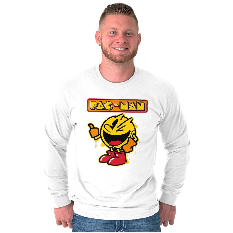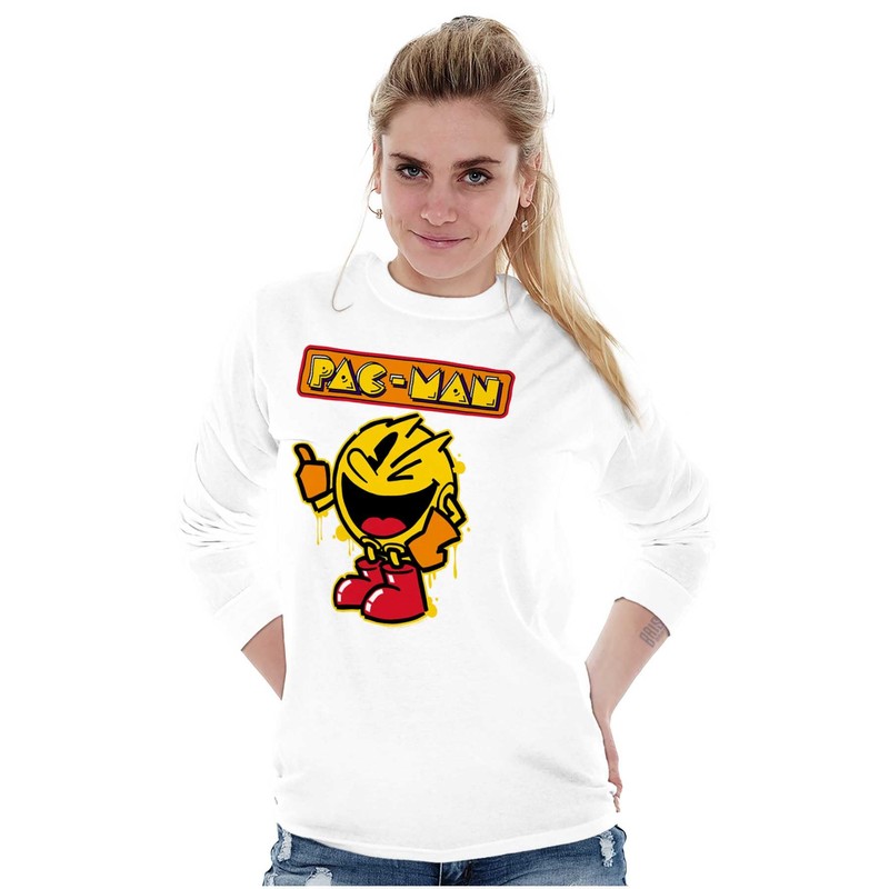 Retro Pacman Video Arcade Game Drip Long Sleeve Tshirt Men Women White