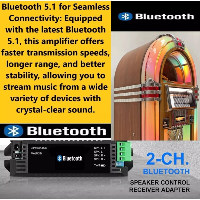"The 2-Channel Mini 5.1 Bluetooth Amplifier is a powerful and versatile audio solution that adds a new dimension to your speaker setup. The Bluetooth connectivity works flawlessly, and the AUX input provides a reliable wired connection. A highly valuable addition to my home entertainment system!"Tee – ⭐⭐⭐⭐⭐