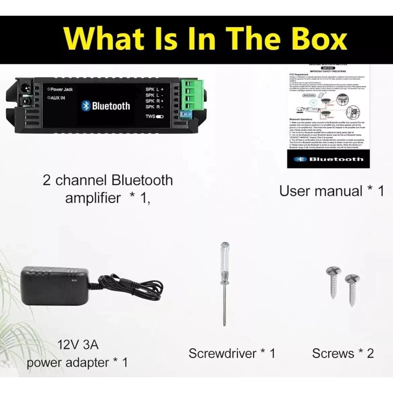 - 1 x 2-Channel Bluetooth Amplifier Box