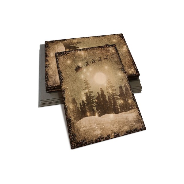 Retro Real Wood Holiday Christmas Greeting Card with Santa and Reindeer in Sleigh (Classic Edge)