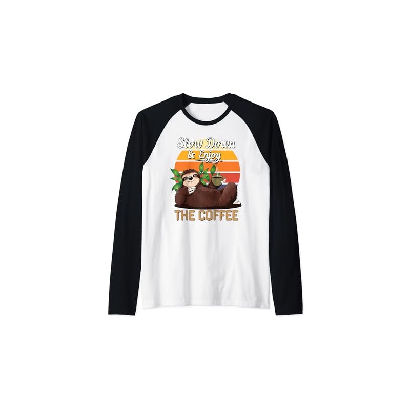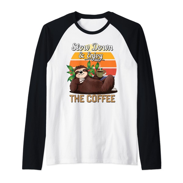 Retro Sloth Slow Down Enjoy The Coffee Lovers Chill Vibes Raglan Baseball Tee