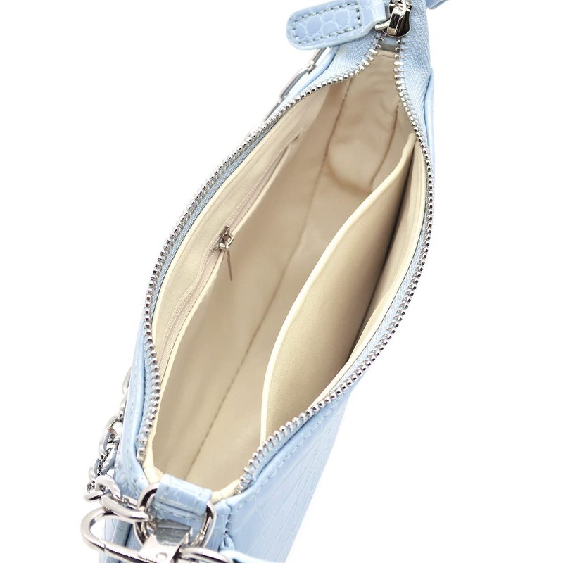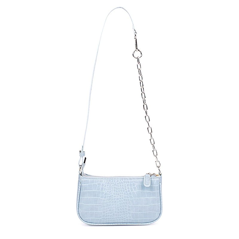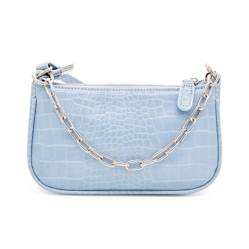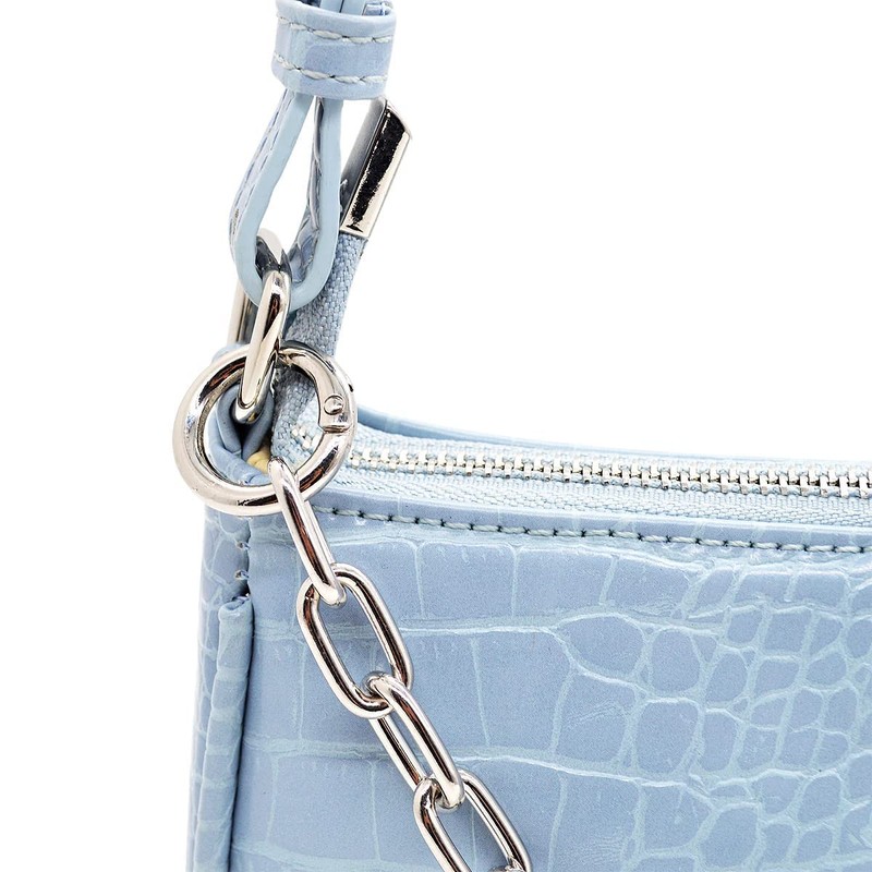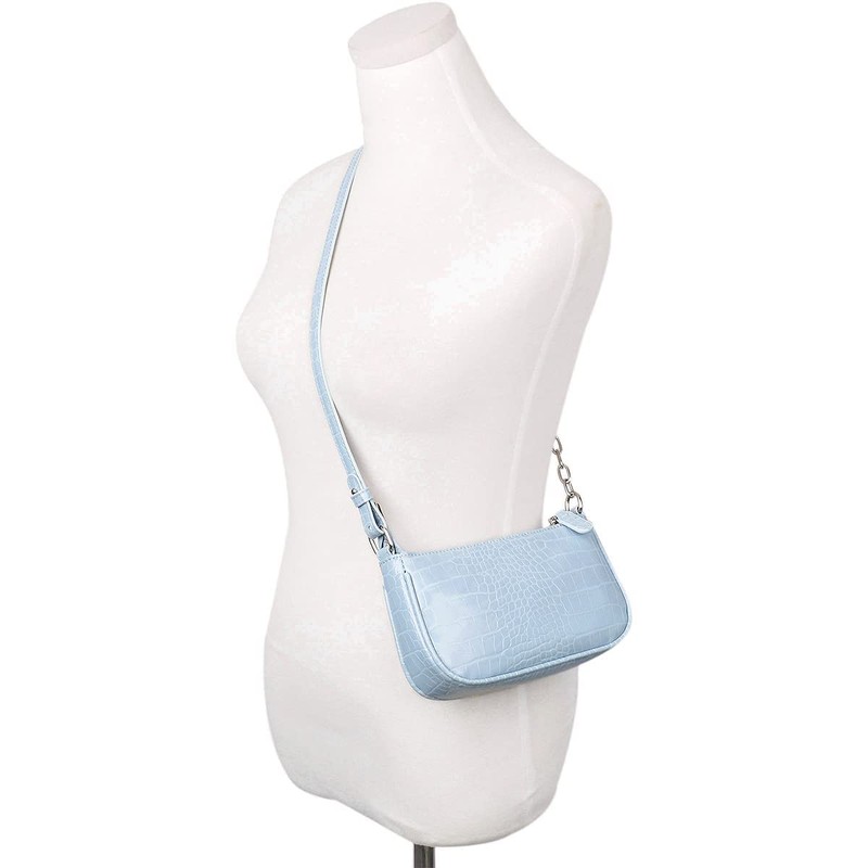 Retro Small Croc Embossed PU Leather Multi-Use Handbag Shoulder Bag Crossbody, Light Blue