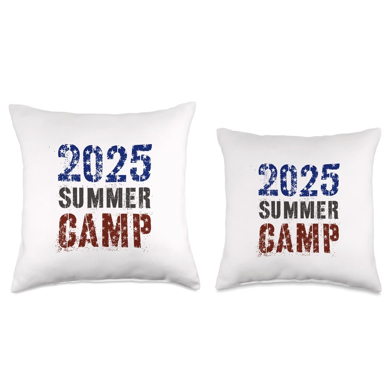 Retro SUMMER CAMP 2025 Kids Campsite Director Host Autograph Throw Pillow