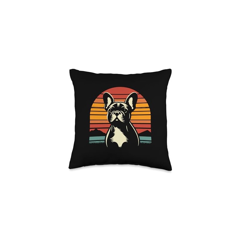 Retro Sunset French Bulldog Dog Graphic Design Throw Pillow