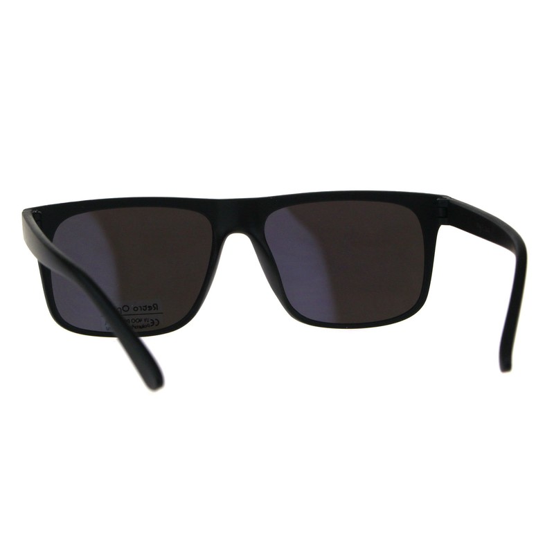 Retro Unisex Sunglasses Simple Matte Black Rectangular Frame Blue Mirrored Lens