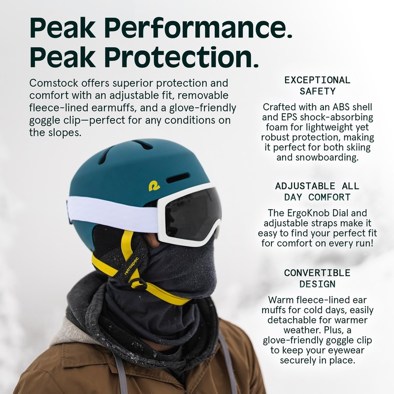- ADJUSTABLE ALL DAY COMFORT - The Comstock skiing helmet, offers an ErgoKnob Dial & straps to ensure swift adjustments for a personalized and comfortable fit.
