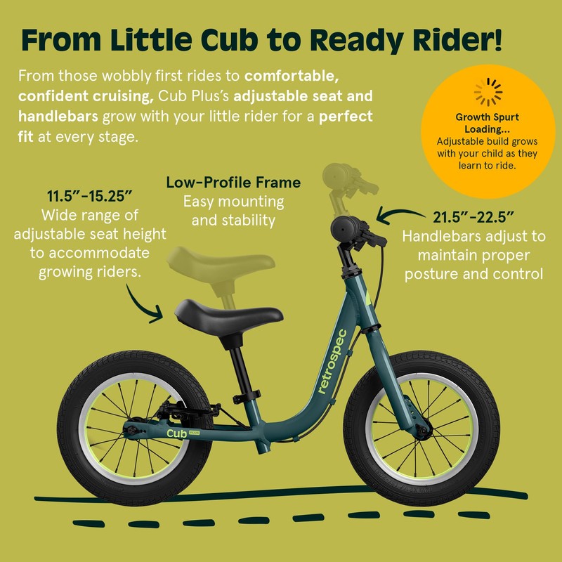 - 11.5" MINIMUM SEAT HEIGHT: Cub Plus is able to support smaller kids than most standard balance bikes. Its adjustable seat and handlebars were made to grow with them.