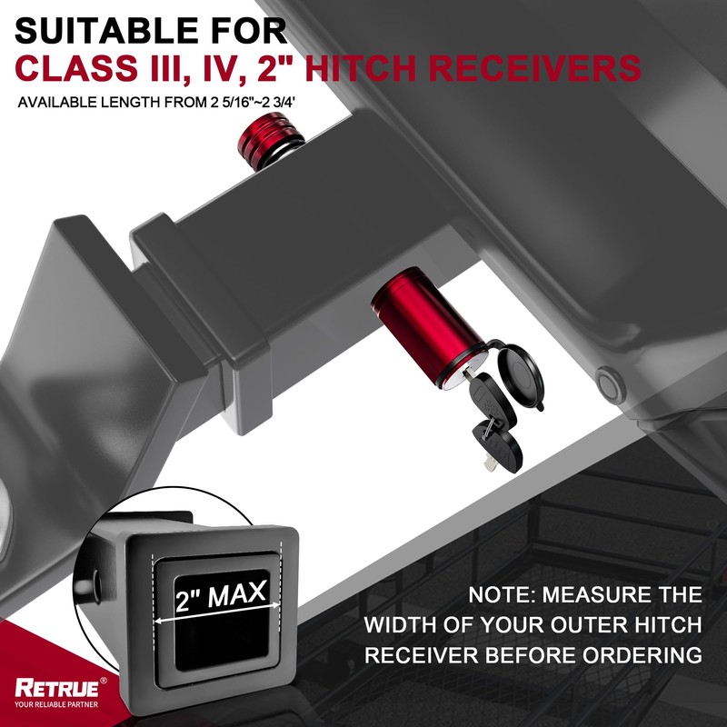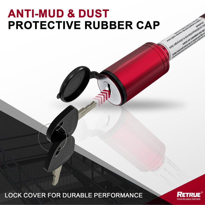 RETRUE RETRUE Trailer Hitch Receiver Pin Lock - Black, 2 Inch Receiver, 5/8" Dia Hitch Lock for Securely Locking Trailer Hitch with Two Keys, Red