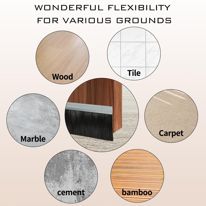 - 6. Our door sweep brush easily attaches to the bottom of your door with SUS 304 screws, creating a tight seal that will keep your home or workspace comfortable and energy-efficient.
