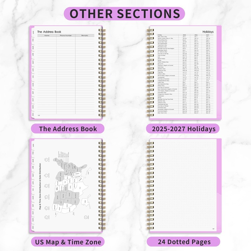 - MORE USEFUL PAGES: 2025 & 2026 Yearly Overview | Important Dates | 2025 Yearly Schedule | My Wish List | 24 Dotted Pages | The Address Book | 2025 - 2027 Holidays | US Map & Time Zone