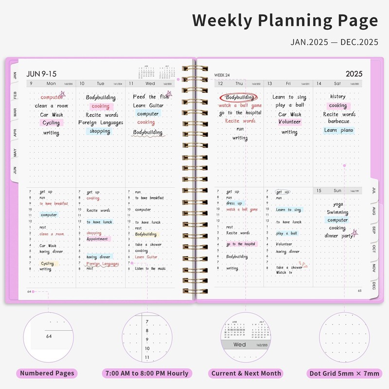 - WEEKLY PLANNING: Each weekly section contains Current & Remaining Days + Current Weeks + Current & Next Monthly Preview, designed specifically with time slots from 7 AM to 8 PM, empowers you to organize and optimize your every hour