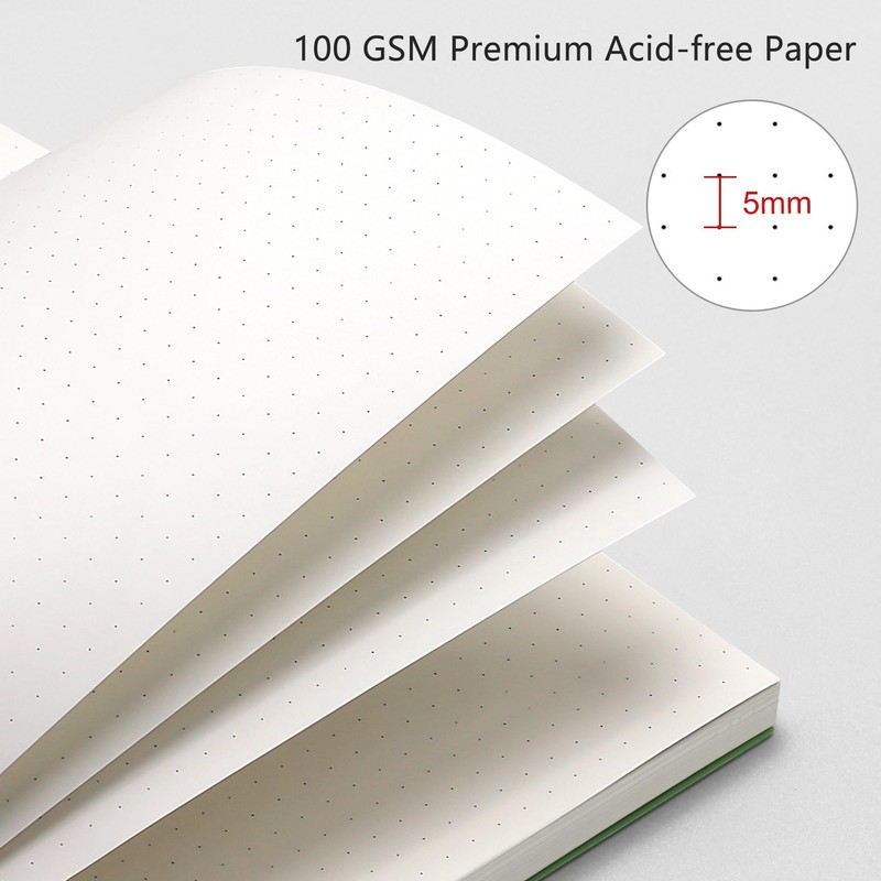 - BULLET DOTTED JOURNAL: Comes in a B5 (7.48" × 10.15'') size, 150 Sheets/300 Pages, 5 mm dot spacing, Sturdy Twin-wire Spiral Bound, Waterproof Plastic Cover, 100 GSM Acid-free Paper, Elastic Band, Pen Holder, Lightweight Ruler, Inner Pocket, Bookmark, Bullet Journaling Stencils