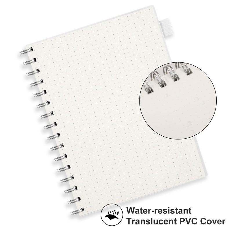 RETTACY Notebook A5 Dotted Bullet Dot Journal, Spiral Notebooks, 300 Sheets/150 Pages for Writing, 100 gsm, PVC Hard Cover, for Women, Men, Work, Office, School, 14.5 x 21 cm - Transparent