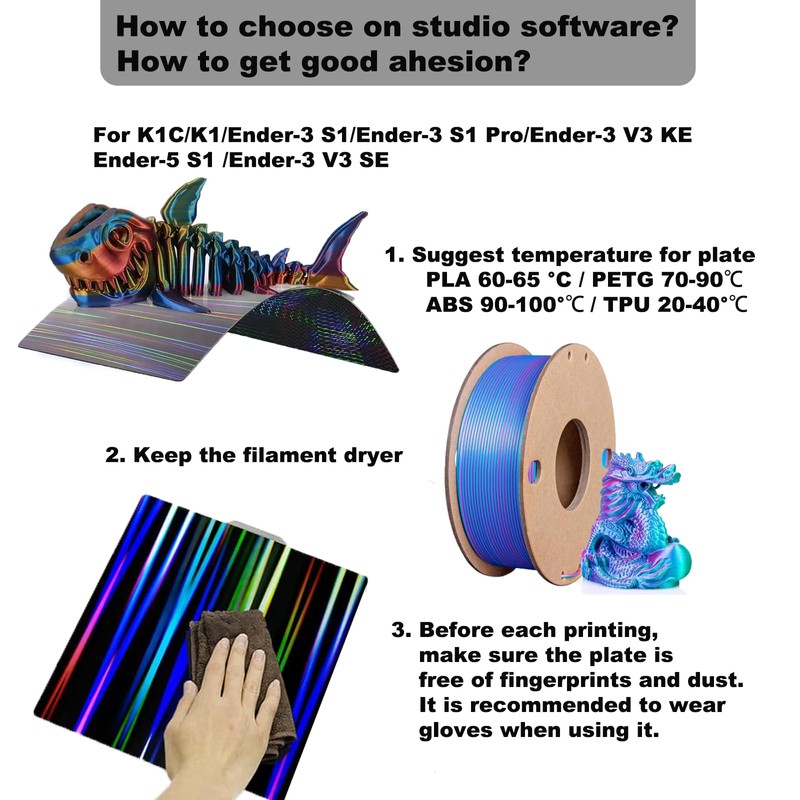 - 【Excellent adhesion for first printing layer】The H1H spring steel flexible build plate has a good adhesive, even better than smooth PEI PET or PEO. It even can stick well without heating the platform, no glue is needed.Please let the build plate cool down before remove the model to avoid damaging the coating.