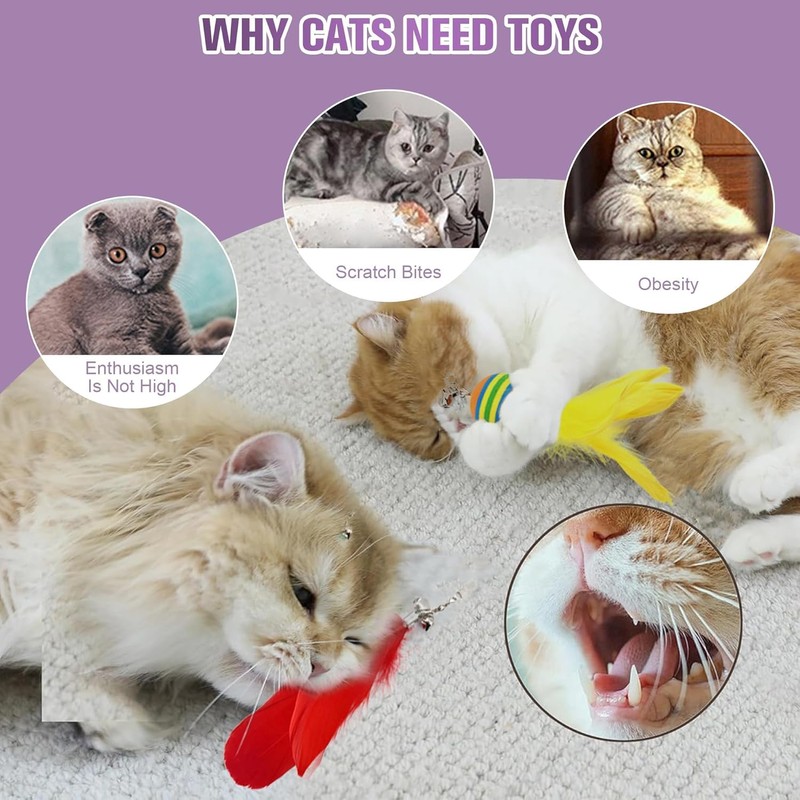 - 【Diverse Toy Selection】 Comes with 20 feather toys, 1 suction cup, 2 magic wands, and 3 adorable caterpillar toys, offering a wide range of engaging play options to keep your feline friend entertained and active indoors.