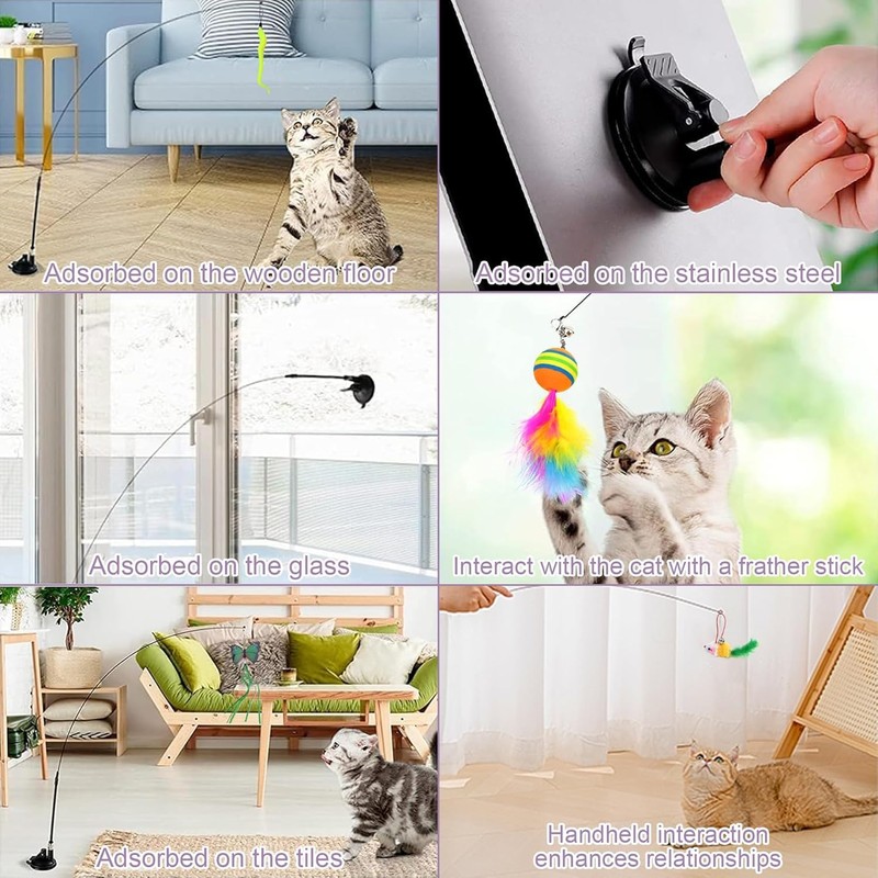- 【Interactive Play Design】 Featuring a suction cup and magic wand setup, these toys can be securely placed on smooth surfaces, facilitating interactive play sessions that strengthen the bond between you and your cat.