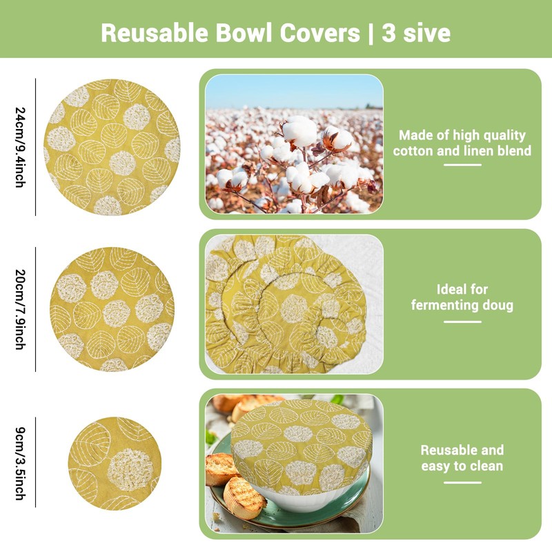 - Durable & Easy to Clean: Say goodbye to plastic bowl covers. Our reusable fabric bowl covers effortlessly replace single-use plastics while saving costs and reducing kitchen waste. When cleaning is needed, simply hand wash or machine wash them, then air dry for reuse.