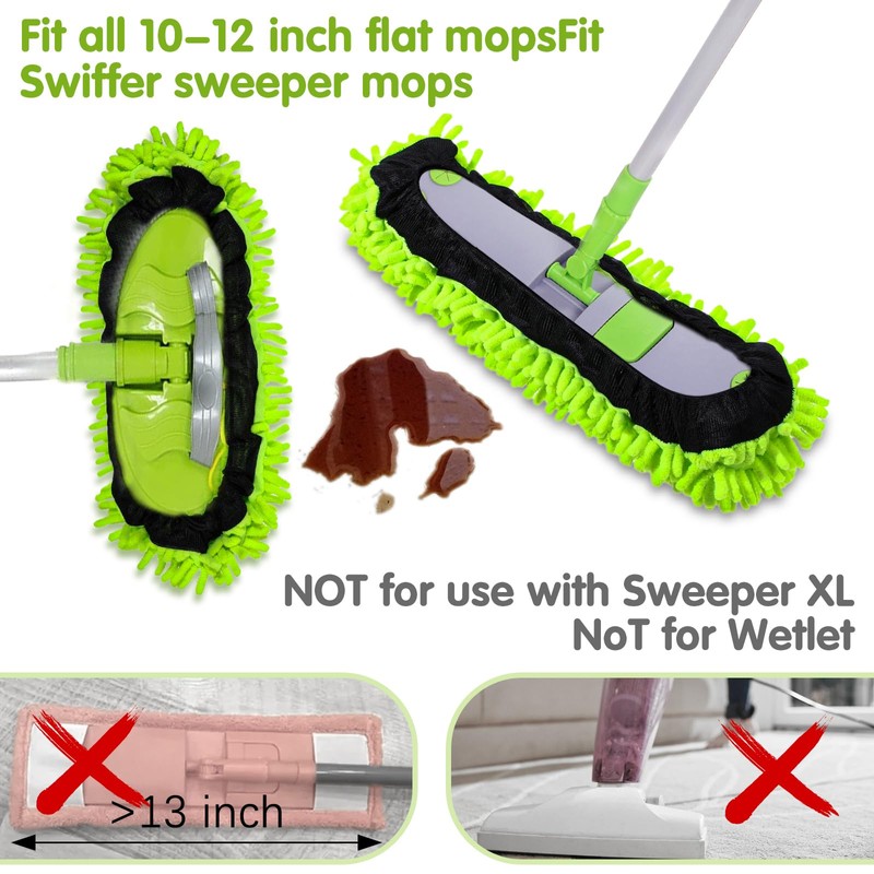 - Compatible with Mops: Replacement mop pads fit all 13.7-15.7 inch flat mops, but NOT compatible with Swiffer Sweeper XL, or Sweeper vacuums.