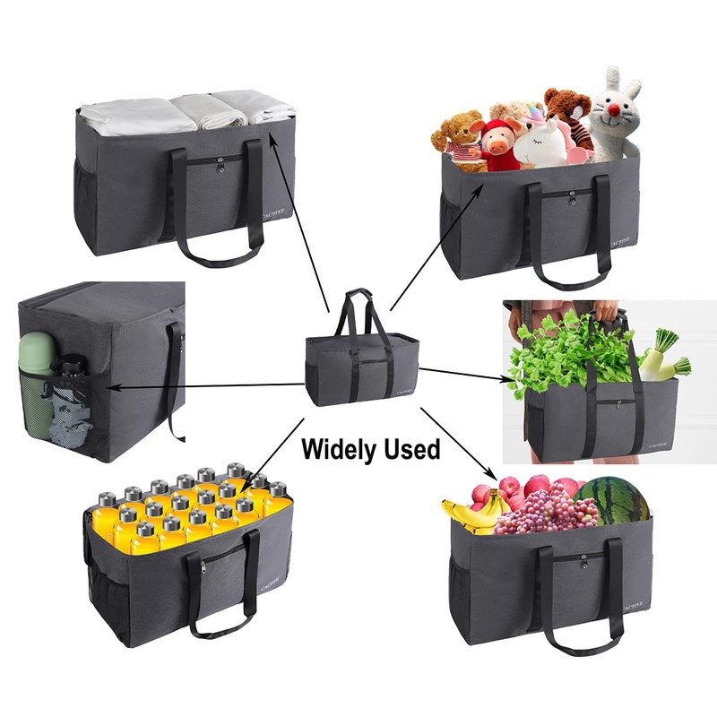 Reusable Grocery Shopping Bag Oxford Fabric Moving Bags for Space Saving Moving Storage For Beach, Pool, Laundry, Car Trunk, Grey, with lid