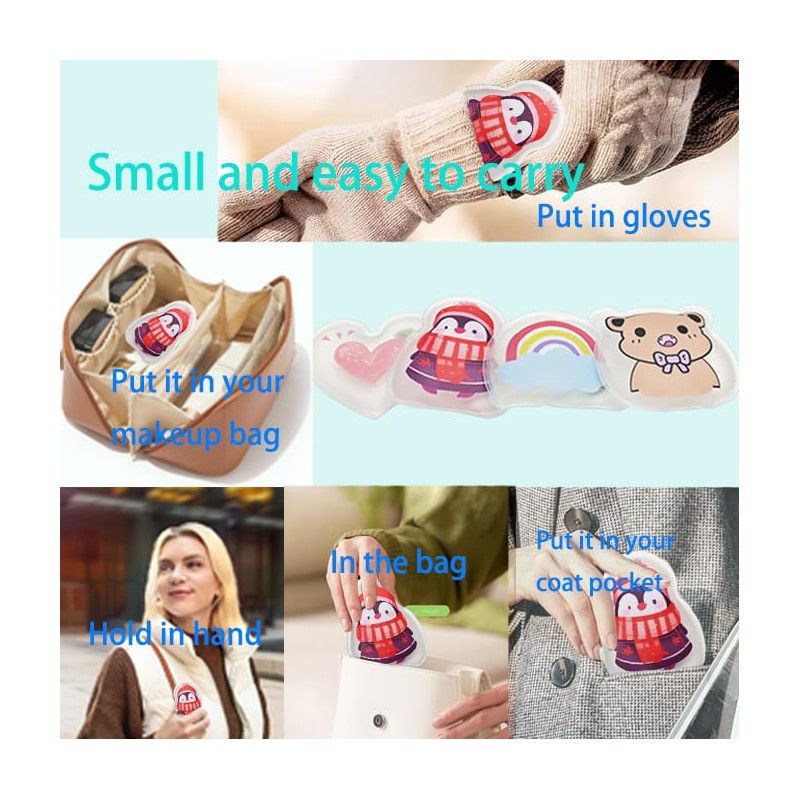 Ourcartoon hand warmers have a high temperature duration of about 40-60 minutes.They are completely reusable. When the hand warmers lose heat, they can bereset simply by placing them in boiling water for about 5 minutes (the crystalsare completely liquefied). Once it has cooled from the boiling water, it isready to be used again. They are an alternative to single-use packaging and cansave you money. The application scenarios of hand warmers are very rich anddiverse. You can use hand warmers in any of the following situations, such ascamping, fishing, soccer and soccer games, hiking, diving, and dog walking.This hand-click hand warmer is portable and easy to use, and will meet most ofyour outdoor heating needs. They're a lot hotter than most hand warmers, andthey're really fun to use.