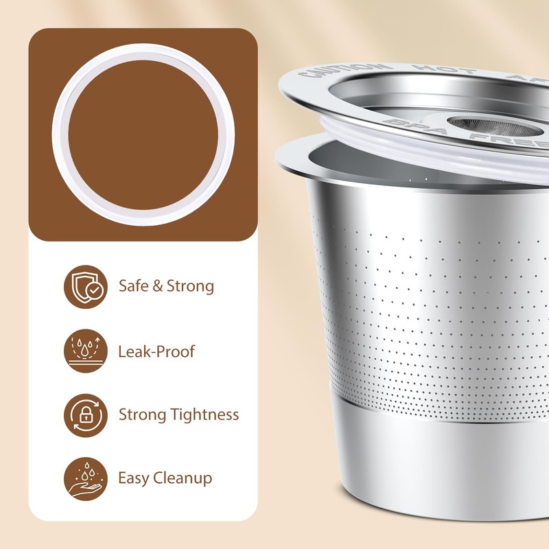 - Leak-Proof & Fresh Seal: Silicone rings create a tight, leak-proof seal, preserving the rich flavors and freshness of your coffee, without spills or mess