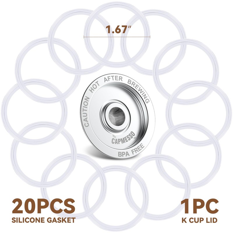 Upgrade your brewing experience with our k cup Lid + 20 Silicone Sealing Rings – a versatile replacement kit designed for most Keurig 1.0 compatible reusable k cups. Whether you're using popular brands or generic k cups, this kit fits most k cups on the market, making it a cost-effective and eco-friendly solution.