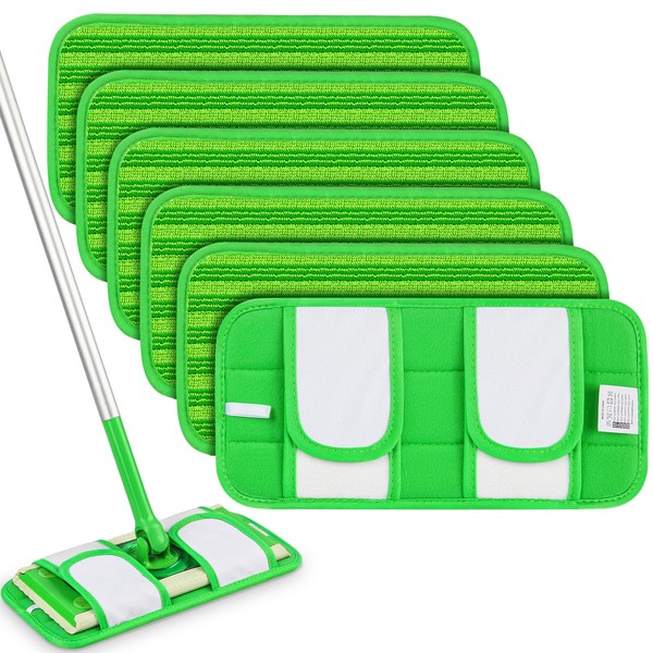 Reusable Mop Pads Compatible with Swiffer Sweeper Mops(6 PCS)- 12 Inch Washable Microfiber Wet Pads Refills Dry Sweeping Cloths Heavy Duty Mop Head Replacement for Wet Dry Floor Cleaning, Green
