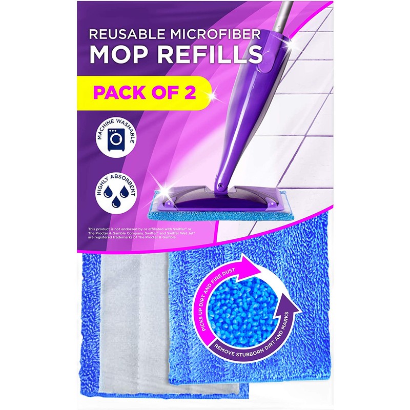 Reusable Mop Pads Compatible with Swiffer WetJet (2 Pack) - Microfiber Mop Refill for Wet Mopping Cloths - Hardwood Floor Cleaning Spray Mop Pads are Reusable Replacements Wet Jet Pads Refills