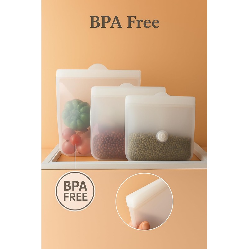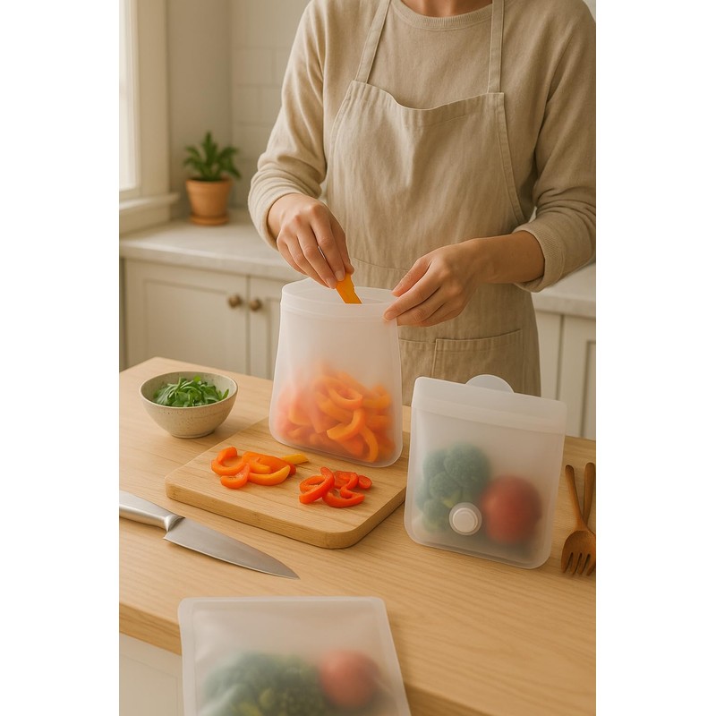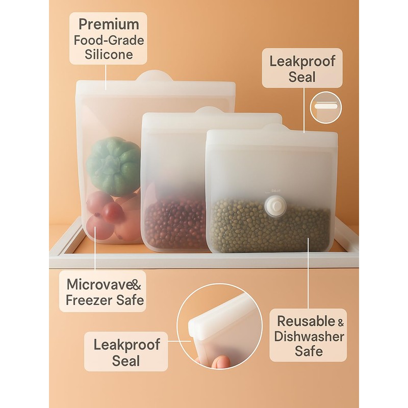 Reusable Silicone Food Storage Bags – Premium Eco-Friendly Multi-Size Set (650ml/1300ml/2000ml), Leakproof, BPA-Free, Freezer & Microwave Safe, Dishwasher Friendly (White(Clear))