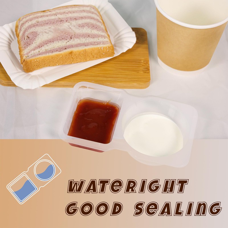 Condiment Container with Lid, 2 Conpartment Snack Containers, Disposable Plastic for Sauce Snack