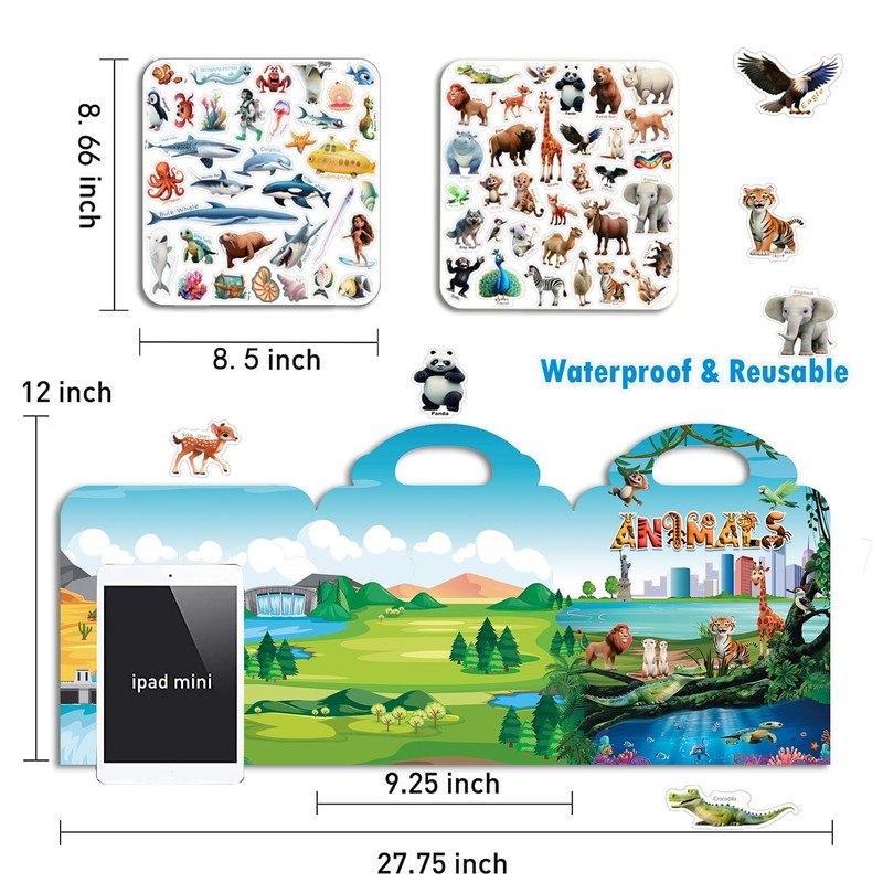 - 🐘【ANIMALS THEME STICKER PLAY SET】Toddlers sticker book containing 67pcs REUSABLE Stickers is enough to keep kids busy for a while(Truly reusable and tear-resistant), and the stickers are larger than other sticker books; For children to play safely, please do not leave children alone.