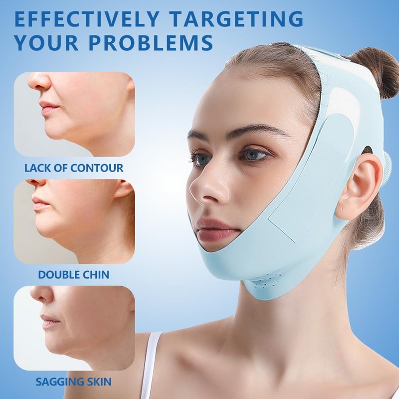 • Targeted V-Line Facial Contouring This adjustable chin strap applies gentle compression to reshape jawlines and reduce double chin appearance. The 3D contour cutting design precisely lifts sagging skin for defined V line face mask effects