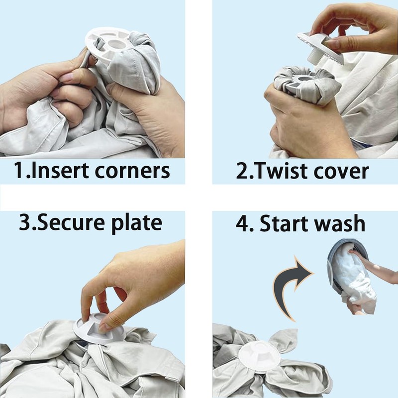 - [Easy to use]:Our compact bed sheet detangler is very convenient for you to use, just fix the corners of the bed sheet in the designated position, and then select the low and medium speed spinning program to achieve high efficiency and shape protection. (Watch our video on how to use it)(Not:When this product is used on thicker or larger sheets, it may be difficult to tighten. We value your understanding!)