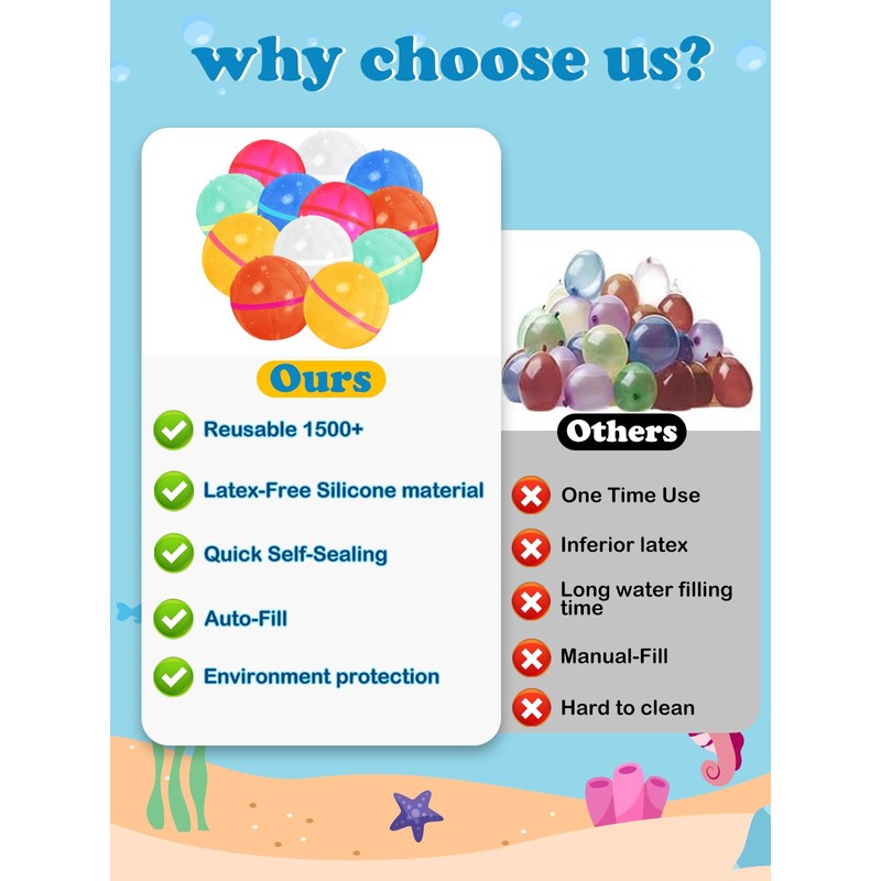 - Self sealing water Bombs: When Our reusable water balloons opened and placed in water, our water balloons will quickly fill with water and self seal. Greatly saves the process of water injection and improves the efficiency of preparation