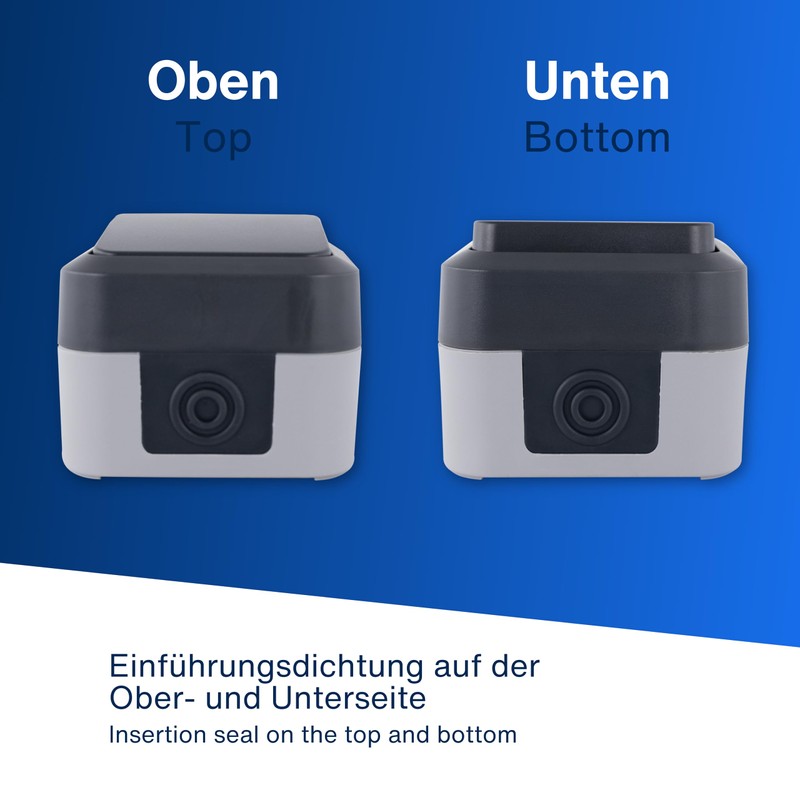 - Button. Areas of use: Wet room – dust protection and radiation protection (IP55). Plug-in connection for rigid conductors, 1.5 mm² to 2.5 mm²